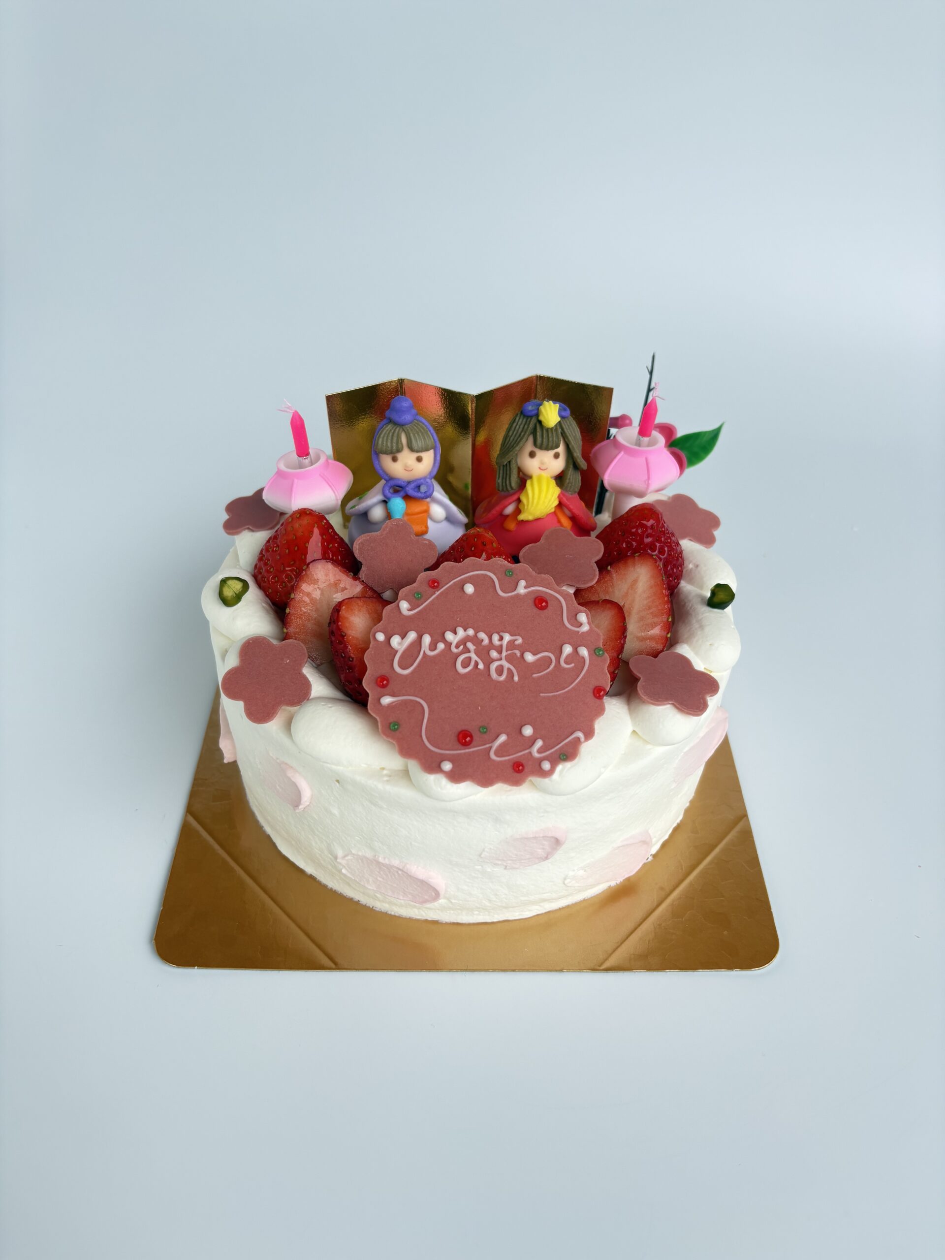 「雛祭りデコレーションケーキ」「雛祭りシフォンケーキ」それぞれこの時期だけのデコレーションケーキとなります。店頭にも並びますが数に限りがありますのでご予約をお勧め致します。